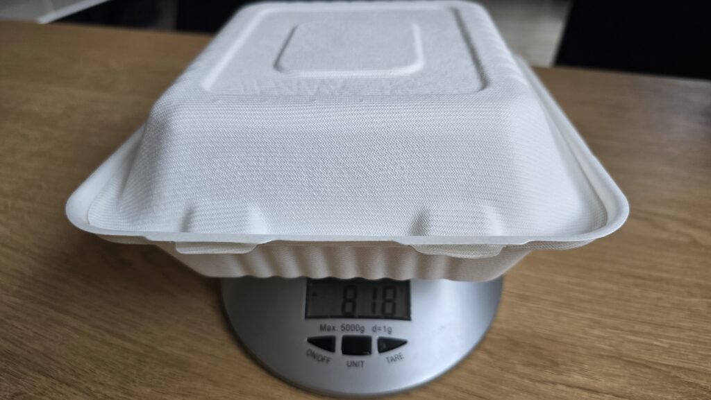 A skoro o pudełku mowa — opakowanie jest totalnie inne niż standardowe styroboksy. Sztywne, biodegradowalne, z ciekawą fakturą. Jeżeli ktoś zwraca uwagę na ekologię, to na pewno doceni taki detal. Ja spotkałem się z takim pierwszy raz i robi świetne pierwsze wrażenie.